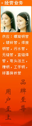 本公司主要生產(chǎn)經(jīng)營:螺旋管,焊接鋼管,無縫管,鍍鋅鋼管,球墨鑄鐵管,直縫鋼管,角鐵,工字鋼,彎頭法蘭等。產(chǎn)品廣泛應(yīng)用于市政工程,供水管道,污水排放,供熱管網(wǎng),煤氣管網(wǎng),煤井礦山,通風(fēng)管道,建筑工程,鋼結(jié)構(gòu),打樁,橋梁,碼頭等領(lǐng)域。同時本公司配有防腐加工廠,專業(yè)對鋼管進(jìn)行內(nèi)外壁防腐加工,鋼管外壁主要有三油兩布,五油三布,環(huán)氧煤瀝青及環(huán)氧樹脂漆以及各種高分子涂料。鋼管內(nèi)壁主要有無毒飲用水涂料IPN8710-2B,水泥砂漿及各種環(huán)氧涂料。螺旋鋼管材質(zhì)為:Q235 也可按客戶需要自選材質(zhì)。螺旋鋼管的標(biāo)準(zhǔn)依據(jù)為:SY/T5037標(biāo)準(zhǔn)生產(chǎn)和檢驗(yàn)。定尺長度通常為:12000mm,也可以生產(chǎn)不同長度的管材。